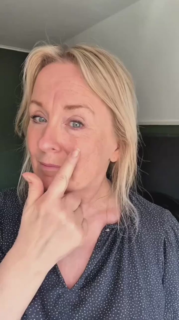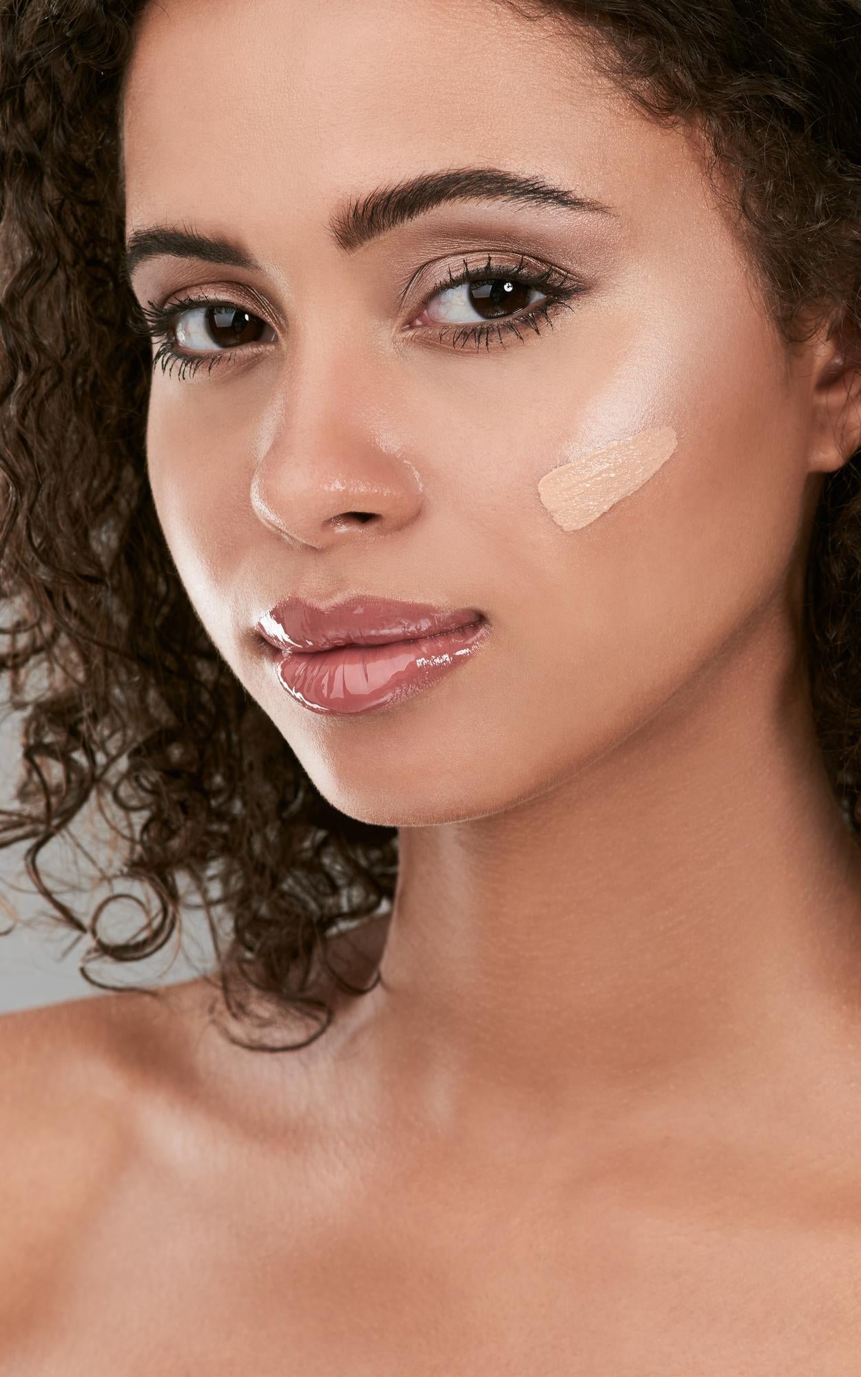 Une pompe. Étirez du centre du visage vers l’extérieur au pinceau ou à l’éponge légèrement humidifiée.